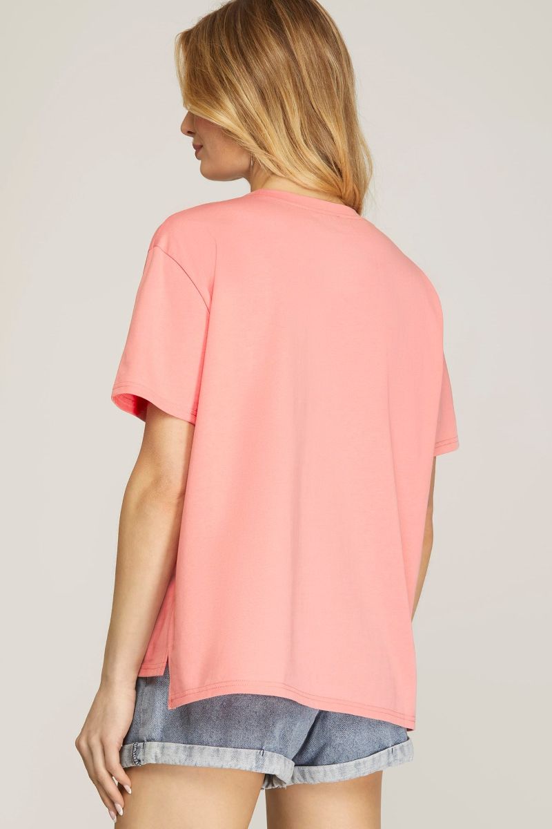 The round neckline sits comfortably and flatters the collarbone, while drop-shoulder short sleeves ensure a relaxed fit that’s perfect for all-day wear. The straight, loose cut gently skims the body for a flattering shape that looks good on everyone. The hip-length hem gives flexibility—tuck it in for a structured style or leave it untucked for an easy-going vibe.