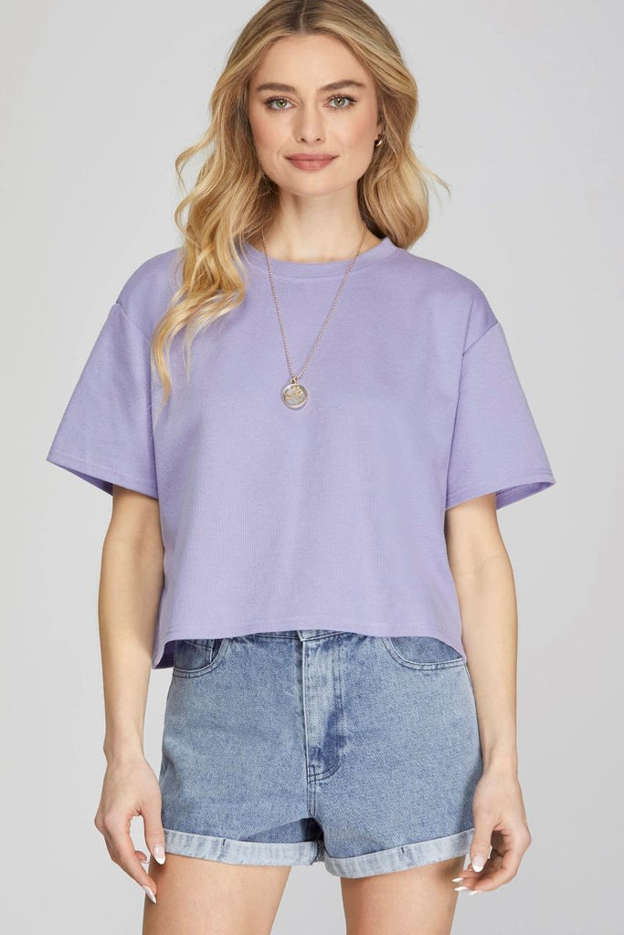The relaxed, boxy cut paired with slightly dropped shoulders gives this tee a laid-back yet refined look. The cropped hemline subtly lifts the waistline to create a flattering, elongated shape that pairs beautifully with high-rise bottoms. Designed with a classic crew neckline, it frames the face comfortably while keeping the overall look clean and timeless.