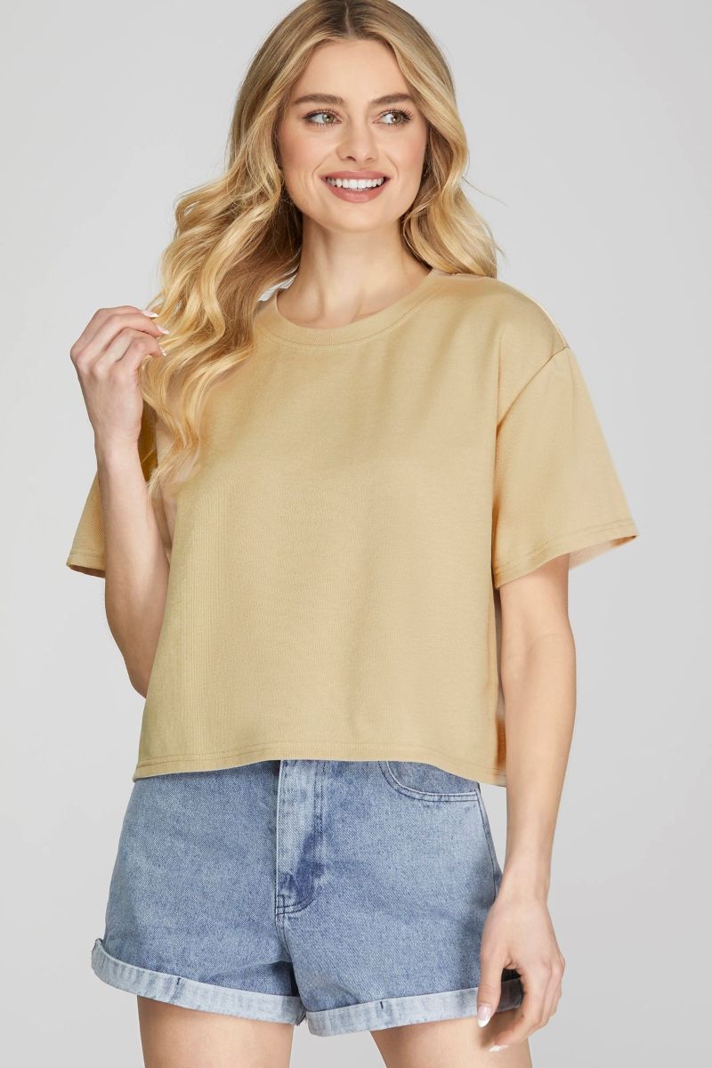 Meet the kind of tee you reach for on repeat. Cut from a soft knit with a smooth handfeel, it balances breathability with structure so it drapes nicely without clinging. The relaxed boxy silhouette and natural drop shoulders deliver that effortless, laid-back look, while the slightly cropped hem lifts the waistline for an instantly elongated proportion.